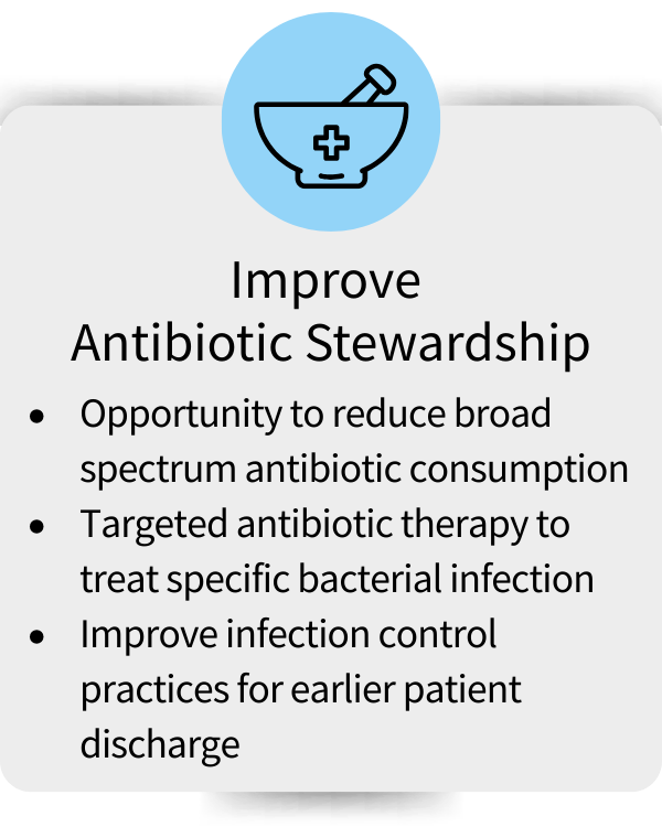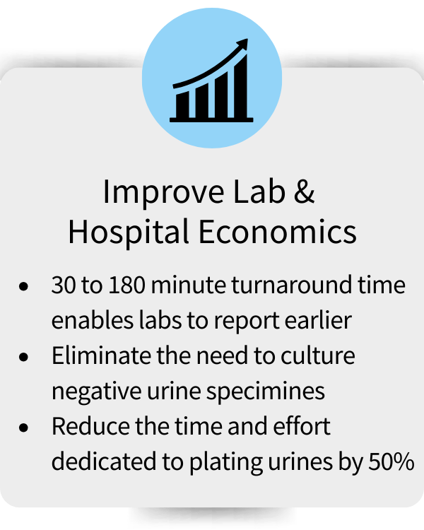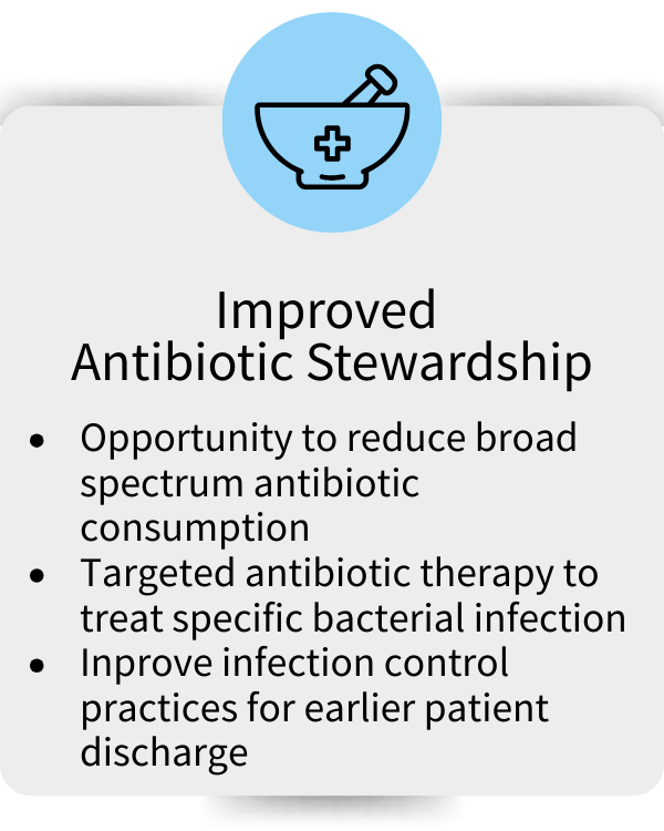 With BacterioScan’s 30-180 minute turnaround time, results are available 1-2 days faster than current methods, for quicker detection of infection and better patient care.