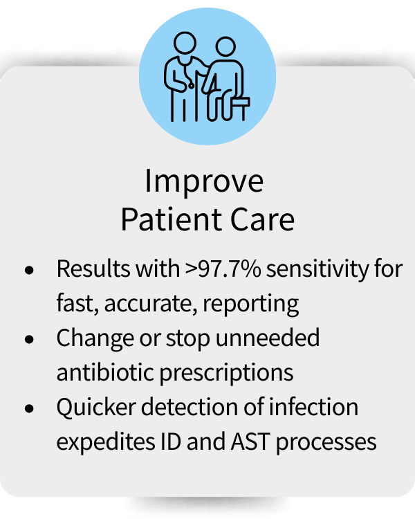 Built on our patented laser microbial growth technology, our platform rapidly detects infection and antibiotic resistance, helping clinicians act sooner, use antibiotics more effectively, and combat resistance.